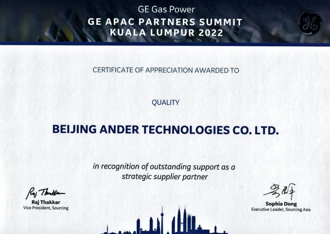 繼今年3月受邀參加2022年GE Gas Power 歐洲供應(yīng)商大會并獲得“供應(yīng)商戰(zhàn)略合作與增長獎”后,安達泰克接到邀請于6月29日在線參加了2022年GE亞太區(qū)供應(yīng)商大會。這是全球新冠疫情爆發(fā)后,亞太區(qū)再次成功召開全體供應(yīng)商大會,也標志著整個行業(yè)的供應(yīng)鏈的復(fù)工和復(fù)蘇,進入了滿足市場需求的快車道。作為200多家亞太地區(qū)供應(yīng)商中的一員,安達泰克很榮幸獲得了質(zhì)量獎,這既是客戶對我們的認可和鼓勵,也是沉甸甸的責(zé)任。質(zhì)量管理和產(chǎn)品質(zhì)量是客戶評價供應(yīng)商業(yè)績的重要指標,更是企業(yè)生存之本。安達泰克在產(chǎn)品制造全過程控制、特殊過程識別與管控、以及合規(guī)性等各環(huán)節(jié),積極組織由管理層為領(lǐng)導(dǎo),技術(shù)和生產(chǎn)人員、DSQR、DSQI共同協(xié)作的產(chǎn)品質(zhì)量保證與持續(xù)改進團隊,在GE Gas Power團隊的支持下,在2022年度保持著較好的業(yè)績。我們將以此次獲獎為新的起點,不斷努力向著零缺陷質(zhì)量目標邁進!